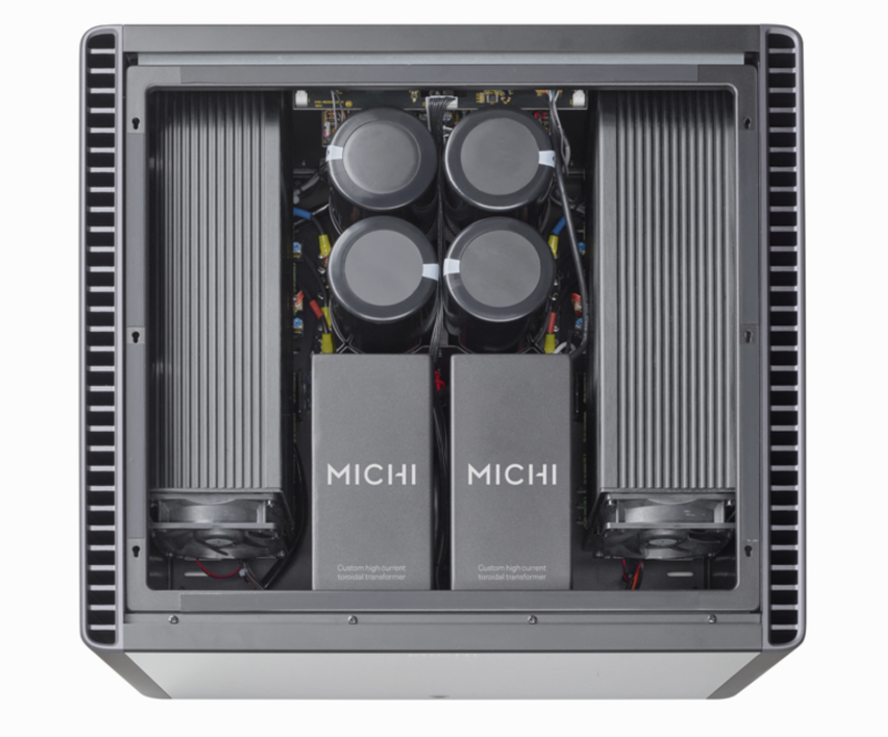 The fabulous Michi S5 Stereo Amplifier delivers 500 watts per channel into 8 ohms loads with best in class audio performance. The dual monoblock design includes twin, oversized, in-house manufactured toroidal transformers for exceptional bass energy while maintaining control and precision of the finest detail all packaged in an elegant design.